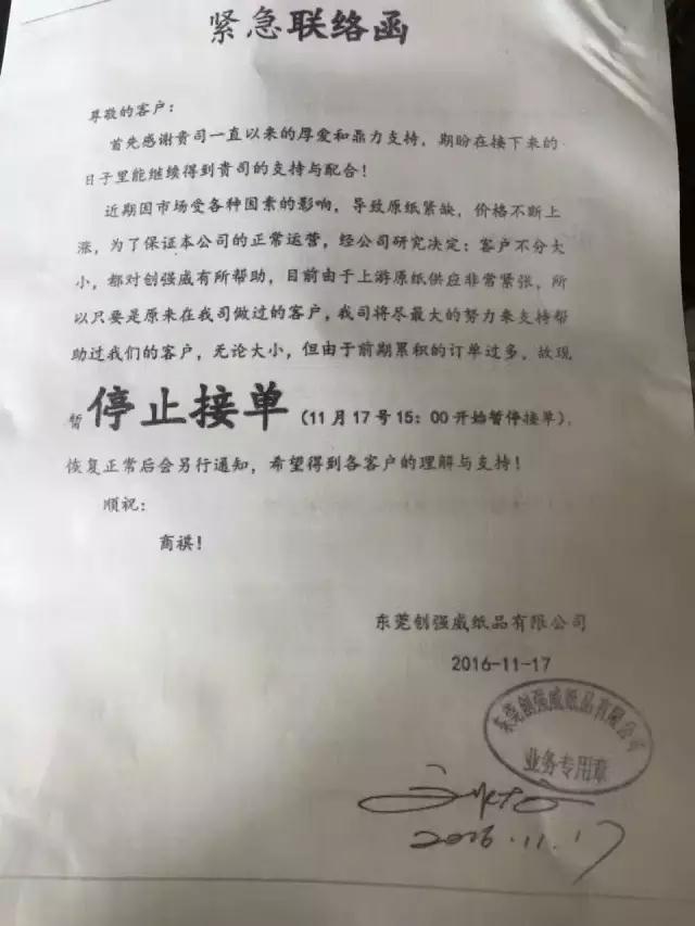 11月19号我不知道别的地方,我知道深圳的原材料紙張漲瘋瞭(le),一時間所有的包裝行業印刷行業朋友圈都在轉發,我開始憤怒瞭(le)這是要逼著(zhe)印刷廠都關門嗎?對你們有好處嗎原材料的廠商...