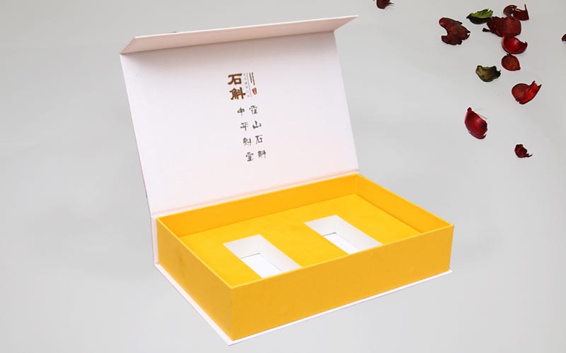 1.材質:盒子面紙用157G銅版紙  單面彩色印刷,單面啞膜裱1300G雙灰闆,盒子内托用白色EVA開模,兩款包裝盒的盒型結構爲翻蓋盒,簡單精緻上流水線制作 。