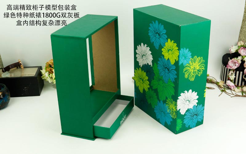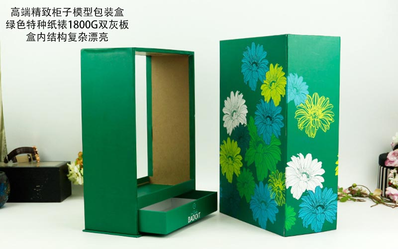 1. 材質:盒子表面用綠色特種紙彩色圖案印刷,表面過一層(céng)水油裱1800G雙灰闆,盒型比較特殊屬於(yú)衣櫃的款式盒子下面配一個抽屜,盒子裏面可以放一面鏡子,盒子比較繁瑣都是手工制作。