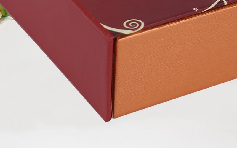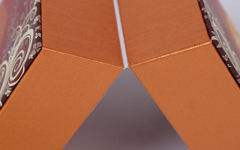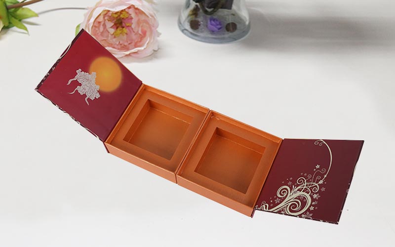 1.材質:盒子用銅版紙彩色印刷裱1500G雙灰闆,内盒橘色紋路特種紙裱1500G灰闆,盒子紙托(裝食品比較環保)盒子盒型爲雙開盒 ,盒子結構比較複雜手工制作