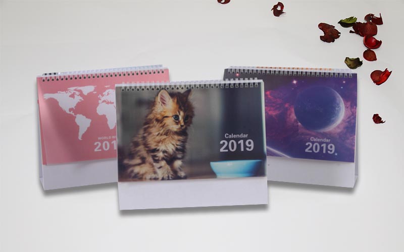 1.材質:整本台曆都可以用一樣的材質,這幾本台曆用啞粉紙彩色印刷,都是13張 ,封面單獨做可以燙金,VU,擊凸,壓紋等不同的工藝。台曆支架特種紙燙金文字LOGO裱1500G雙灰闆,用不同顔色的YO圈裝訂制作成品。